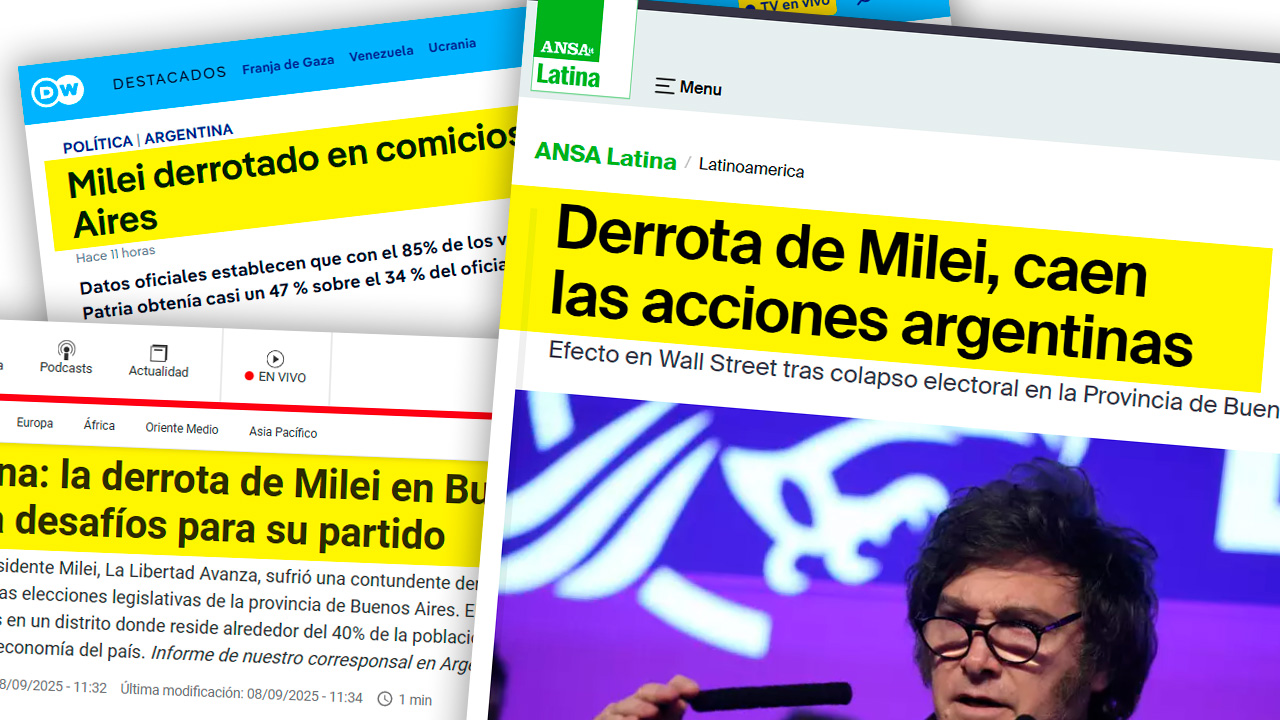 Así reflejaron los principales medios del mundo la derrota de Javier Milei en las elecciones de este domingo 7 de Septiembre. La holgada victoria del peronismo en la provincia de Buenos Aires llamó la atención de los principales portales: “Más dura de lo esperado”.