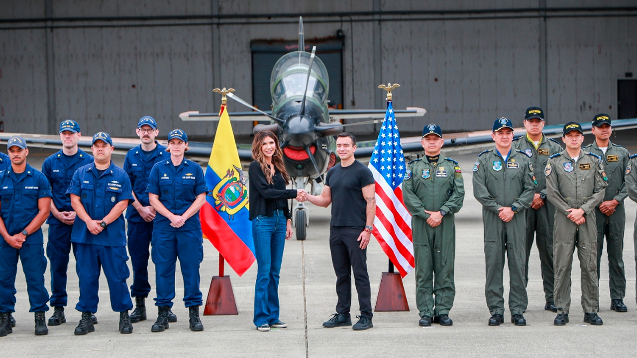 Noem arribó la tarde del miércoles a la base aérea Eloy Alfaro, ubicada en la ciudad de Manta, en el suroeste de Ecuador. Debido a la guerra por el poder entre las mafias, Ecuador es una de las naciones más violentas de Latinoamérica. En los últimos seis años los homicidios se dispararon más de 600%.