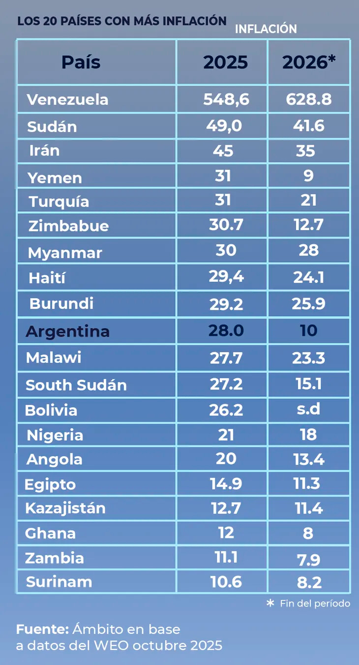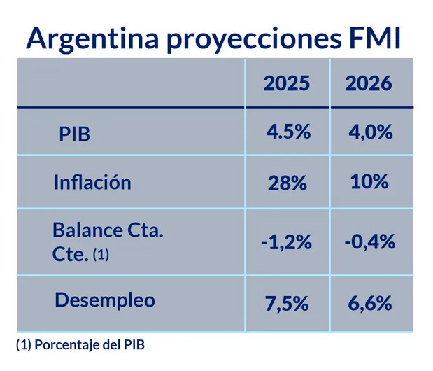 Las proyecciones del FMI para la Argentina para 2026, según datos de WEO.