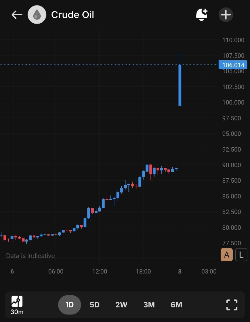 Mientras tanto, los futuros del crudo Brent, de referencia mundial, superaron el domingo a las 22:15 (GMT) los 110 dólares por barril. La subida representa un aumento de más del 14 % con respecto al día anterior. Durante el último mes, el precio del Brent se ha incrementado más del 50 % en comparación con el mismo periodo de 2025.