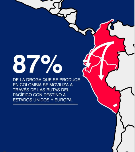 En el video se detallan las cuáles son las rutas por las que circulan las drogas en el continente. El 87% de la droga que se produce usa la ruta del Pacífico para llegar a Estados Unidos.